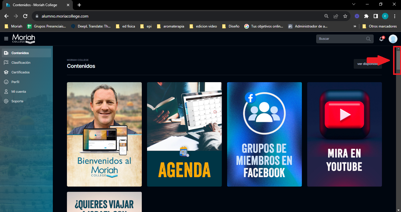 Para visualizar los contenidos debes deslizar la barra lateral al costado derecho.