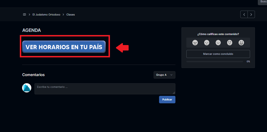 Encontrarás dentro del listado del curso una agenda particular de ese curso, que se adaptará al horario de tu país y podrás organizarte para verlo en vivo. Pasada la clase, podrás encontrarla grabada en la plataforma.
